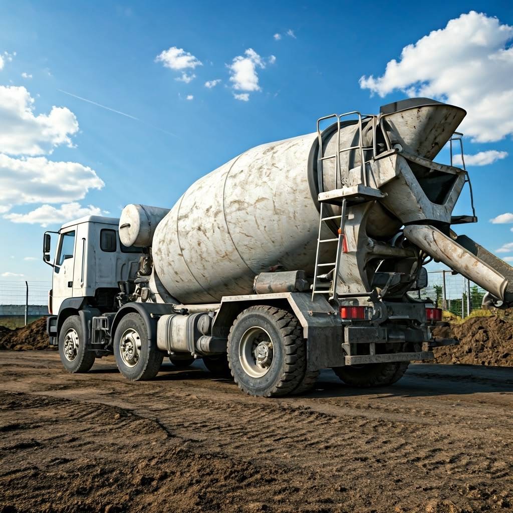 Ready-mixed Concrete are manufactured in a factory, mixed to precise specifications, and then transported to construction sites in specialized mixer trucks, like the one shown in the image. This process ensures consistent quality and eliminates the need for on-site mixing, saving time and labor.